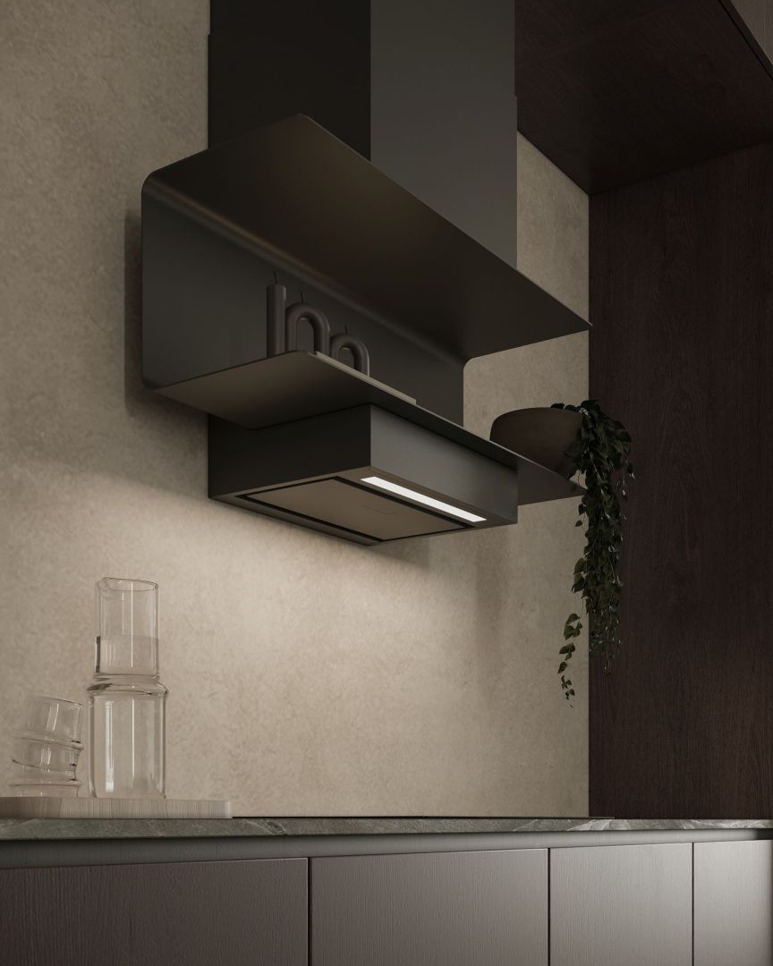 C-Shelf Czarno-Czarny to więcej niż okap – to statement architektoniczny, który definiuje kuchnię na nowo.