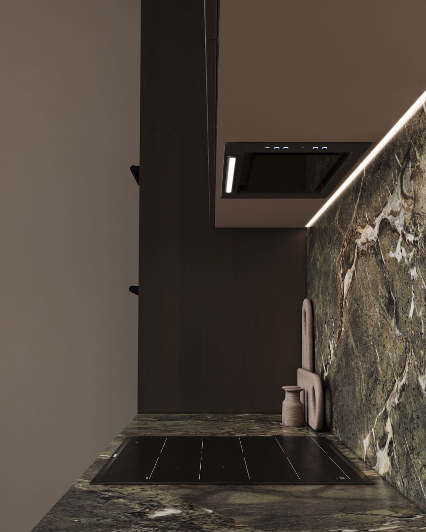 Okap kuchenny Nortberg Micra to najbardziej kompaktowy i estetyczny okap do zabudowy dostępny na rynku. Wymiarami idealnie pasuje do szafki. Zajmuje w niej nieprawdopodobnie mało miejsca, więc przestrzeń dookoła niego można swobodnie wykorzystać na inne rzeczy. Po otwarciu szafki ukaże się wspaniale wykończony sprzęt AGD. Okap w całości został pomalowany w modnym kolorze czarny matt, a dolna część okapu została wyposażona w czarną szybę z hartowanego szkła.