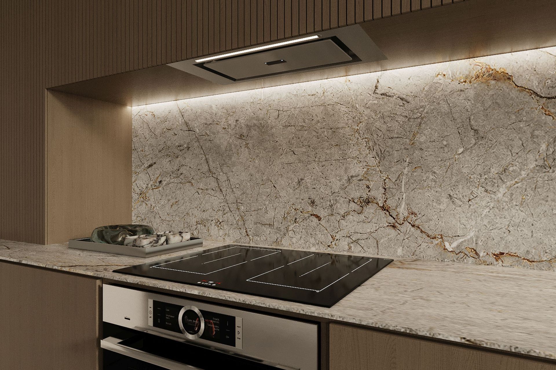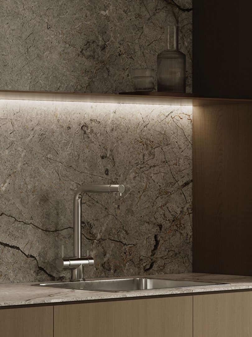 Oświetlenie LED gwarantuje komfort podczas pracy, a bezdotykowe sterowanie gestem zapewnia wygodę obsługi i nowoczesną ergonomię. Odporna na odciski palców stal łączy trwałość z elegancją technicznej estetyki.