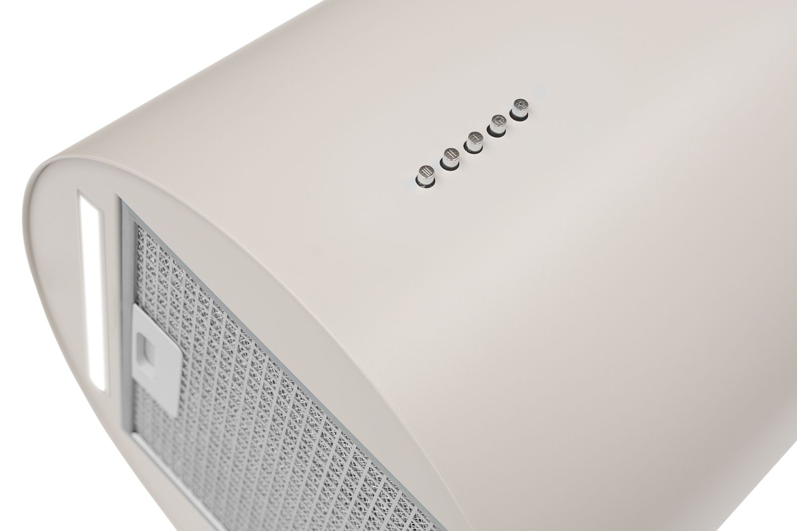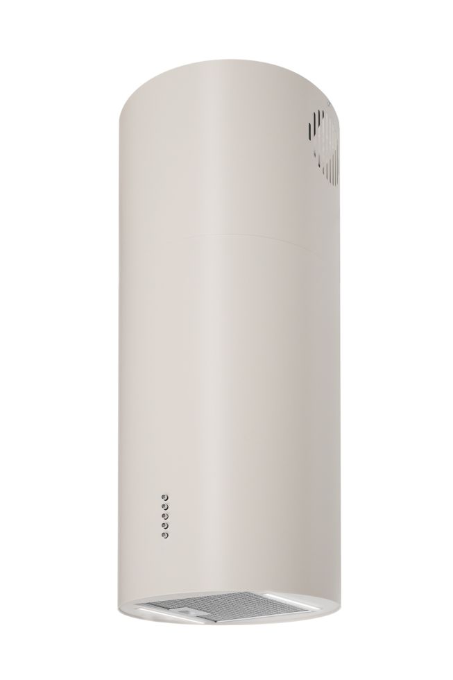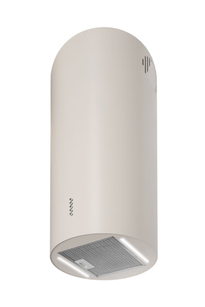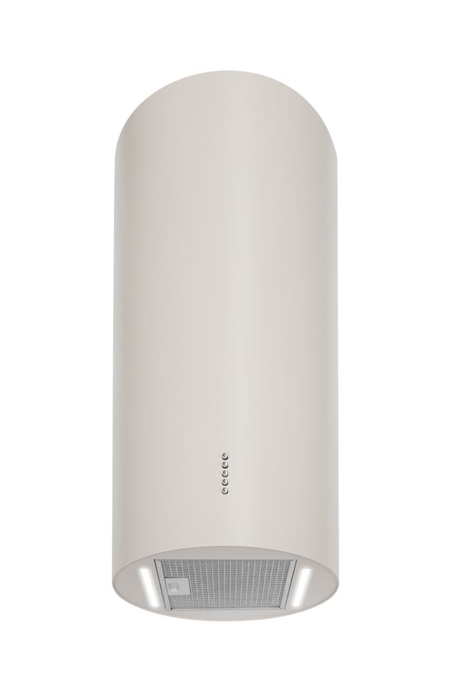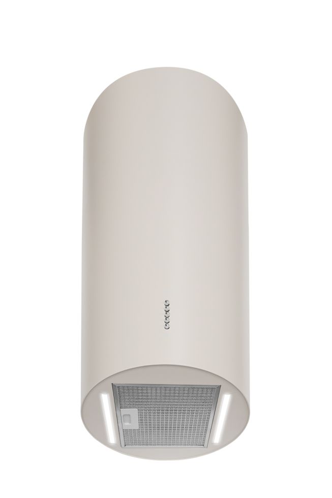 Cylindro Eco 2Strips Kashmir to wyspowy, cylindryczny okap tubowy, który łączy funkcjonalność z designerskim efektem świetlnym. Podwójne paski LED 4000K równomiernie oświetlają blat roboczy, a kaszmirowa tonacja (cashmere) współgra z wnętrzami typu écru, beż, ivory. Harmonijnie integruje się z nowoczesnymi i minimalistycznymi kuchniami. Turbina o wydajności 500 m³/h skutecznie pochłania zapachy i wilgoć, zapewniając komfort codziennego gotowania.