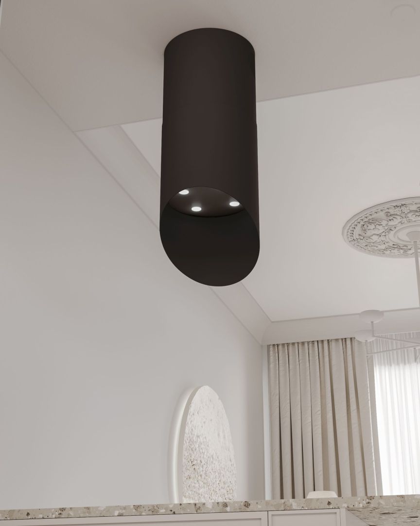 Nowoczesny okap wyspowy, dostępny w wersji wyciąg lub pochłaniacz, wyróżnia się również dopracowanymi parametrami technicznymi. Wysokowydajna turbina o mocy 850 m³/h, energooszczędne oświetlenie LED SMD, elektroniczne sterowanie, pilot radiowy, kilkuwarstwowe filtry aluminiowe oraz najlepsze materiały sprawiają, że model Hiro Black Matt jest efektywny, cichy i bezproblemowy w obsłudze.