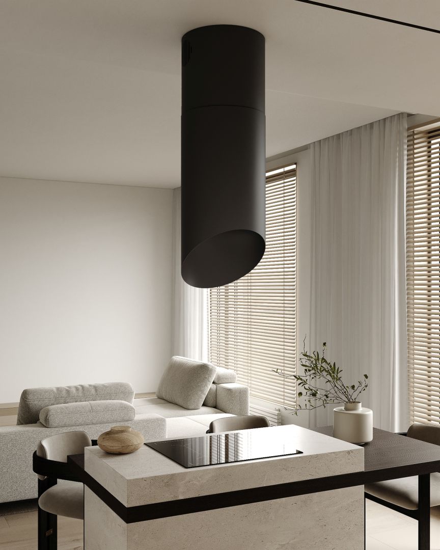 Nowoczesny okap wyspowy, dostępny w wersji wyciąg lub pochłaniacz, wyróżnia się również dopracowanymi parametrami technicznymi. Wysokowydajna turbina o mocy 850 m³/h, energooszczędne oświetlenie LED, elektroniczne sterowanie, pilot radiowy, kilkuwarstwowe filtry aluminiowe oraz najlepsze materiały sprawiają, że model Hiro Black Matt jest efektywny, cichy i bezproblemowy w obsłudze.