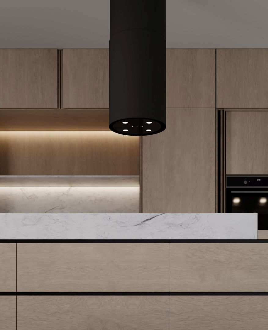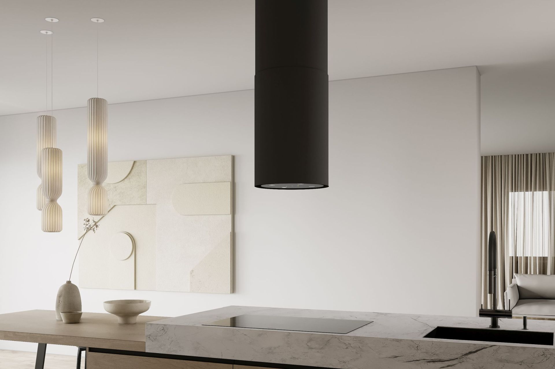 Okap wyspowy Tubo Black Matt sterowany jest teraz gestami – wystarczą trzy ruchy i wszystko jest pod kontrolą. Zarówno podświetlenie, jak i sensory gestów zatopione są w higienicznym i bezpiecznym szkle hartowanym na spodzie okapu. Cylindryczna bryła okapu w kolorze głębokiej matowej czerni została doceniona zarówno przez designerów, jak i największych krytyków: klientów. Z przyjemnością oddajemy kolejną odsłonę absolutnego hitu wśród tubowych okapów nad wyspę.