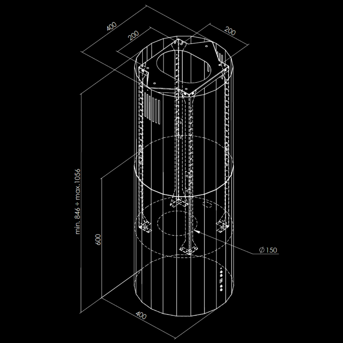 | Wysokość okapu: | min 84,60 cm - max 105,60 cm |